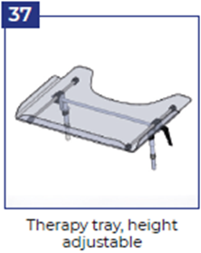 • Терапевтический столик, размер 1, прозрачный или серый (на выбор) * (*возможно только с держателем для принадлежностей И возможно только с сиденьем, установленным по направлению движения И невозможно при использовании бедренных поддержек) (36)