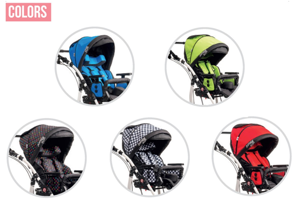 • боковые фиксаторы для тела на сиденье, регулируемые по ширине (поясничный валик, регулируемый по высоте, 2 боковые съемные подушечки на сидение, 2 боковые съемные подушечки на спинку коляски)